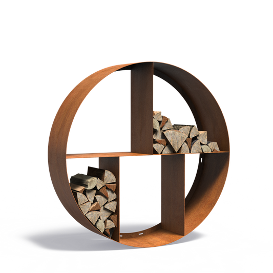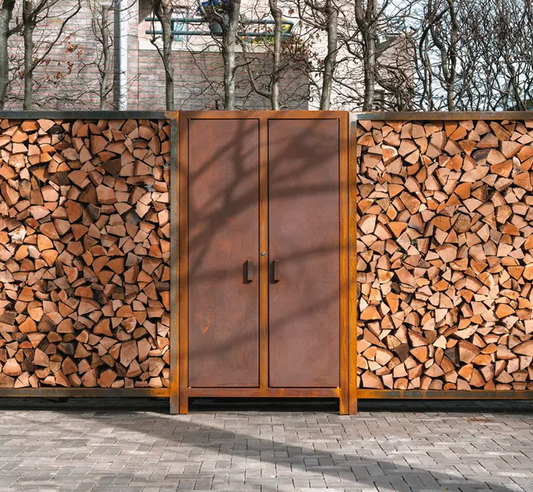Mit unseren Holzlagern aus Cortenstahl bewahren Sie Ihr Brennholz ordentlich und dekorativ auf. Sie sind nicht nur funktional, sondern setzen auch ästhetische Akzente in Ihrem Außenbereich.
