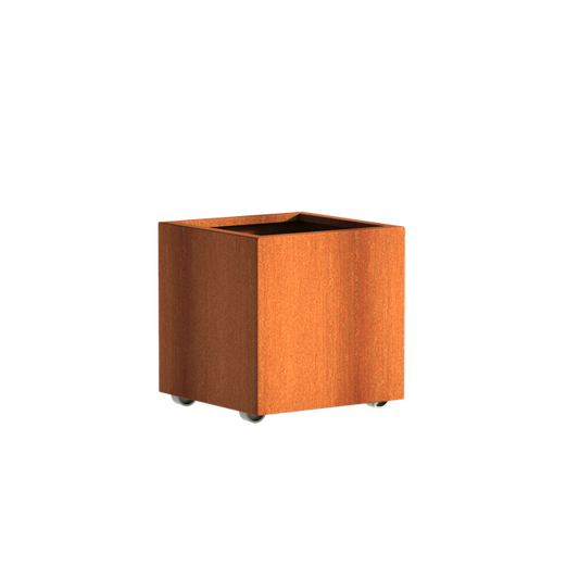 Pflanzgefäß CARREZ mit Rollen aus Cortenstahl