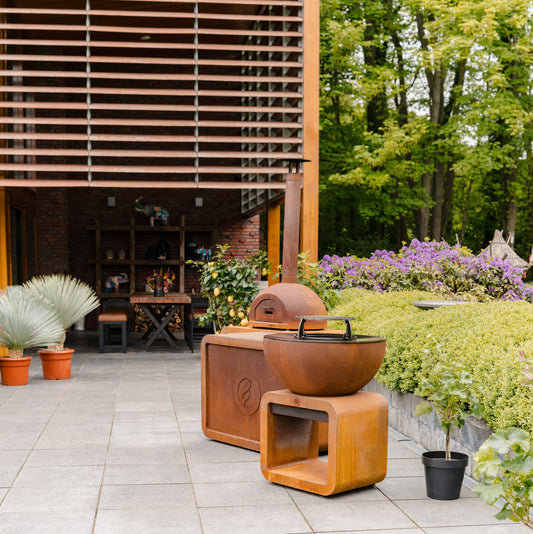 Station de barbecue Kamado en acier Corten