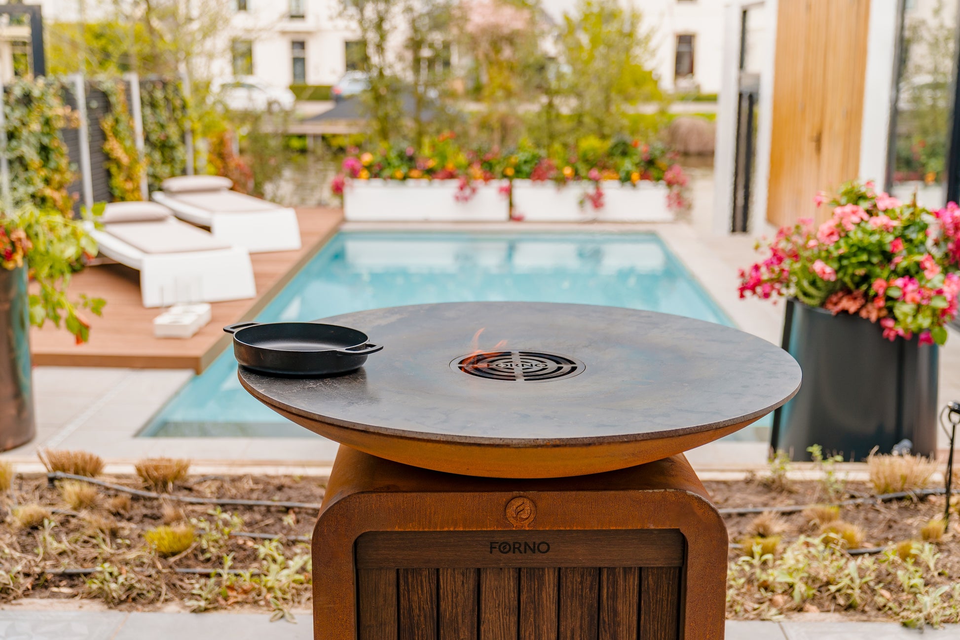 Fabriqué en acier Corten de haute qualité, ce grill développe avec le temps une patine rouillée naturelle, qui lui confère une esthétique unique tout en protégeant le matériau contre les intempéries.