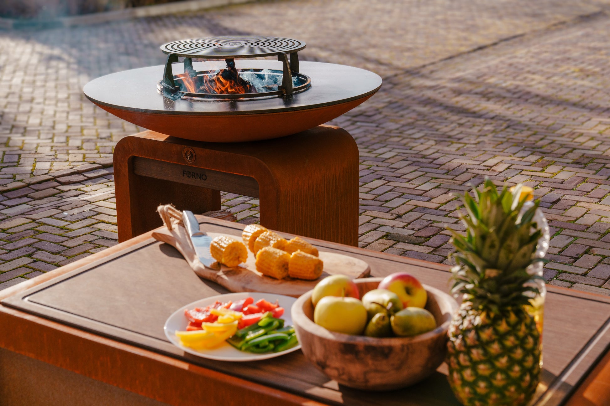 Ajoutez une touche d’exception à votre jardin – avec la FORNO Seare Halo, la cuisine d’extérieur élégante en acier Corten haut de gamme.