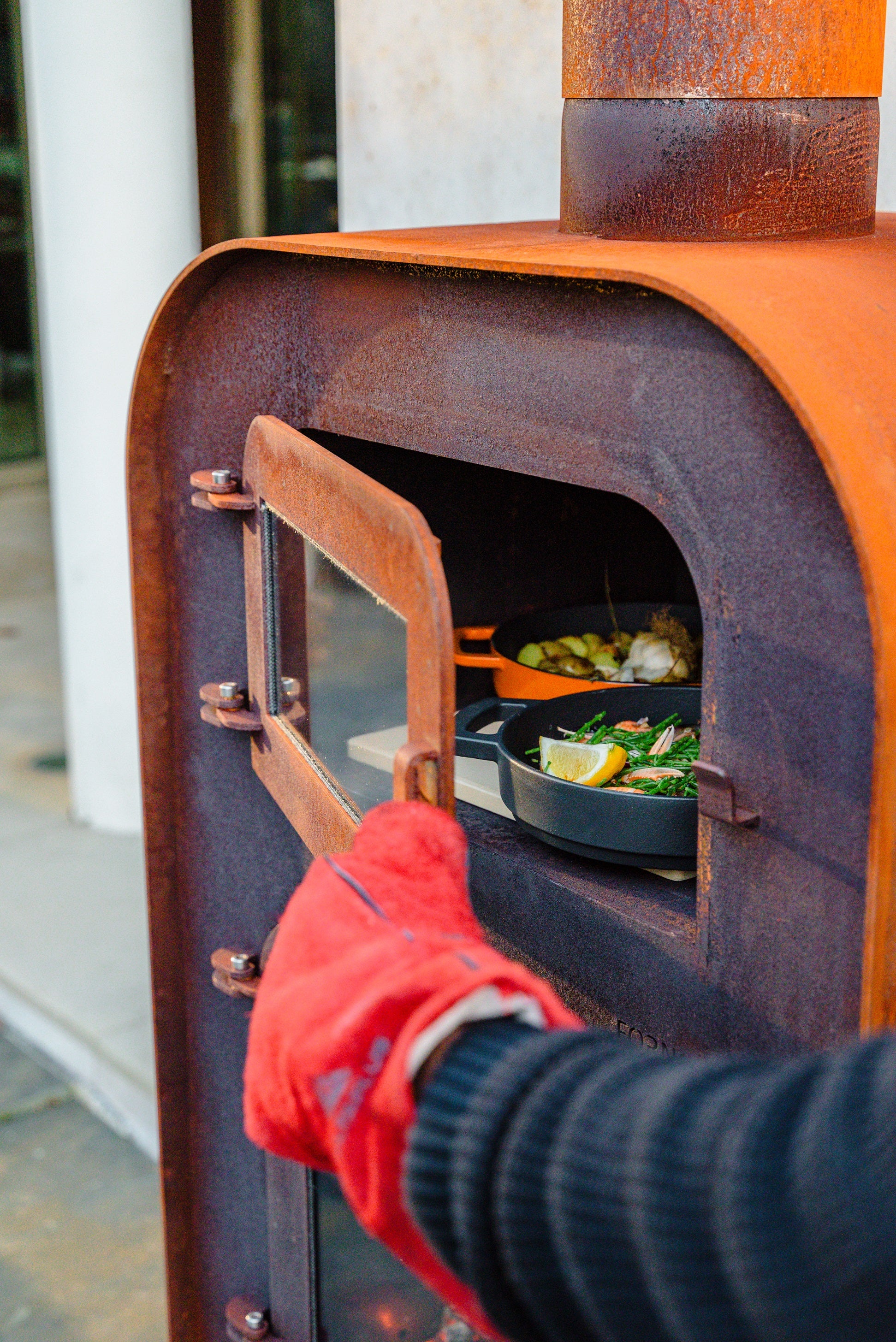 La double paroi assure une excellente rétention de la chaleur et une agréable diffusion thermique, parfaite pour des soirées conviviales en plein air. Que ce soit dans un jardin privé, sur une terrasse ou dans un espace extérieur gastronomique, cette cheminée est extrêmement polyvalente. Grâce aux propriétés résistantes aux intempéries de l’acier Corten, elle reste facile à entretenir et conserve son esthétique au fil des ans. Un simple nettoyage occasionnel suffit pour préserver ses performances et son apparence.